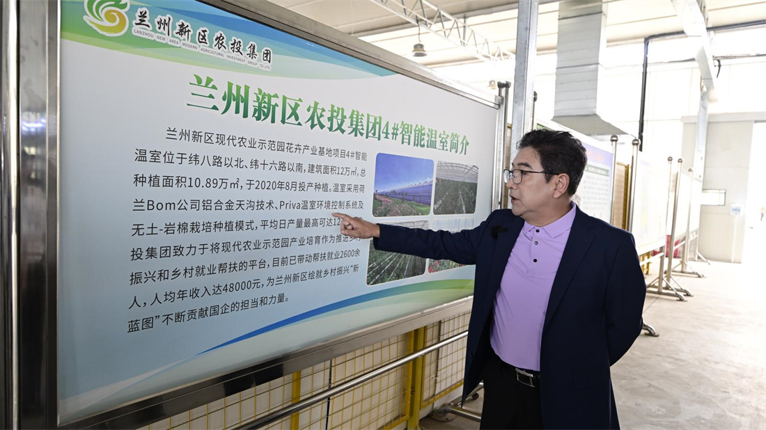 占地近1萬畝的蘭州新區(qū)現(xiàn)代農(nóng)業(yè)示范園,規(guī)劃建設(shè)花卉貿(mào)易中心、花卉培育中心、生態(tài)精品蔬菜林果生產(chǎn)基地及采摘區(qū)三大區(qū)塊,是集現(xiàn)代智慧農(nóng)業(yè)、休閑農(nóng)業(yè)、旅游觀光、頤養(yǎng)為一體的現(xiàn)代農(nóng)業(yè)示范園。4號智能溫室里,整齊排列的玫瑰植株長勢良好,枝頭上的玫瑰花含苞待放。